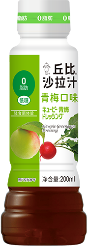 丘比沙拉汁青梅口味,整体为棕红色,青梅果肉分布其中,酸甜适口兼具清新梅子口味,适合搭配蔬菜、肉类食用,推荐用于轻食沙拉的制作。 0脂肪、低糖的配方为轻食生活带来新体验。
