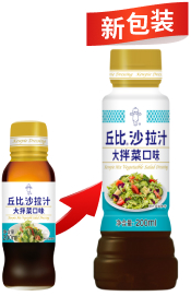 丘比沙拉汁大拌菜口味是由食醋、辣椒油及植物油等调制而成的一款中式口味沙拉汁,甜辣适宜,清爽可口。适合用于多种生鲜蔬菜沙拉,尤其适合用于各类中式大拌菜。