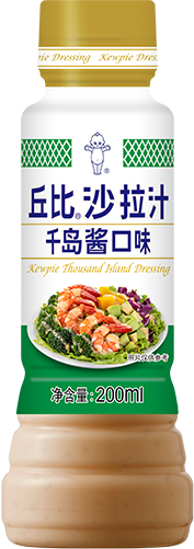4将丘比沙拉汁焙煎芝麻口味、丘比沙拉汁千岛酱口味倒入调料碗中,蘸食即可。